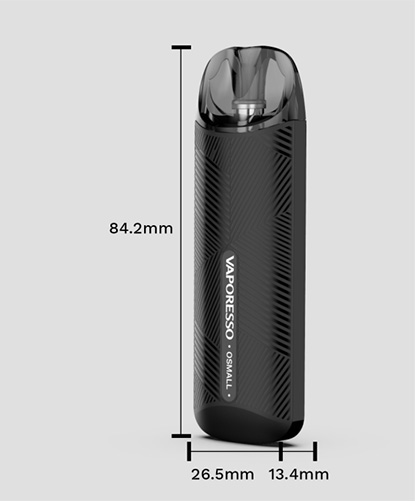 Au niveau de l'aspect du pod Osmall, vous retrouverez un design simple et élégant avec une excellente prise en main. Sa forme droite aux bords arrondis et sa surface striée lui donnent un aspect très moderne tout en améliorant son ergonomie. Il est très agréable à utiliser et se range très facilement où vous le souhaiter vu qu'il ne fait que 8cm.